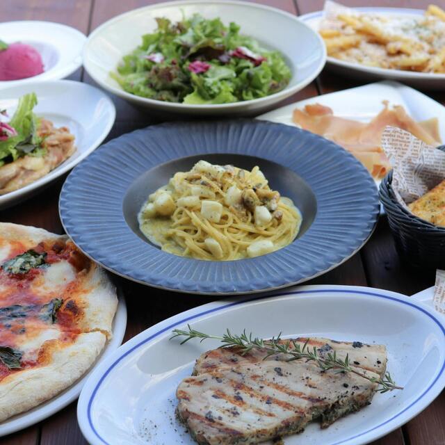 パスタやピザの単品オーダーもできますが、追加料金でメインディッシュやデリセットをプラスしてランチセットにすることも可能。